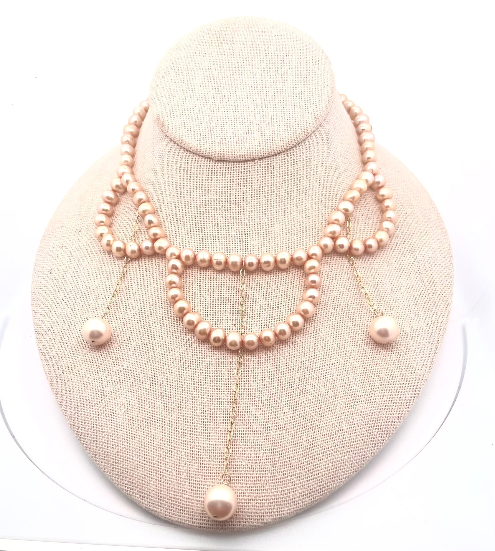 Victorian Style Pearl and Mother of Pearl Triple Drop Necklace